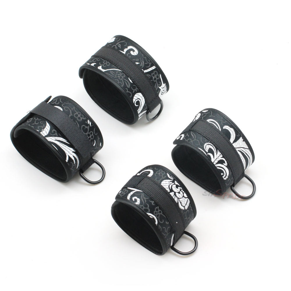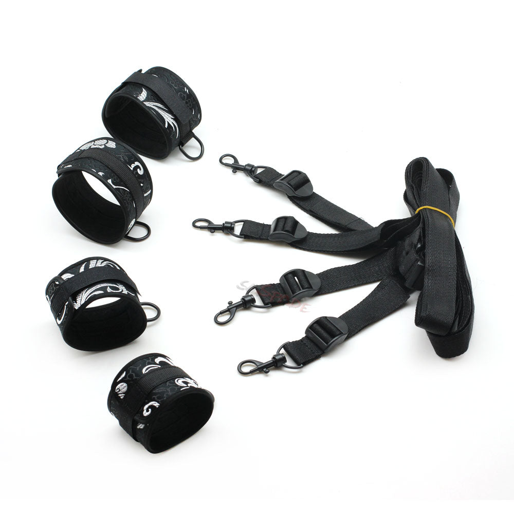 The Strap Down is an erotic creation for the decadently debauched. Our black bondage set is perfect for being restrained to the bed by both wrists and ankles, with its 2 x sets of velvet lined cuffs and 2 x clip ended straps. Incorporate it into your bedroom antics for some added spice.