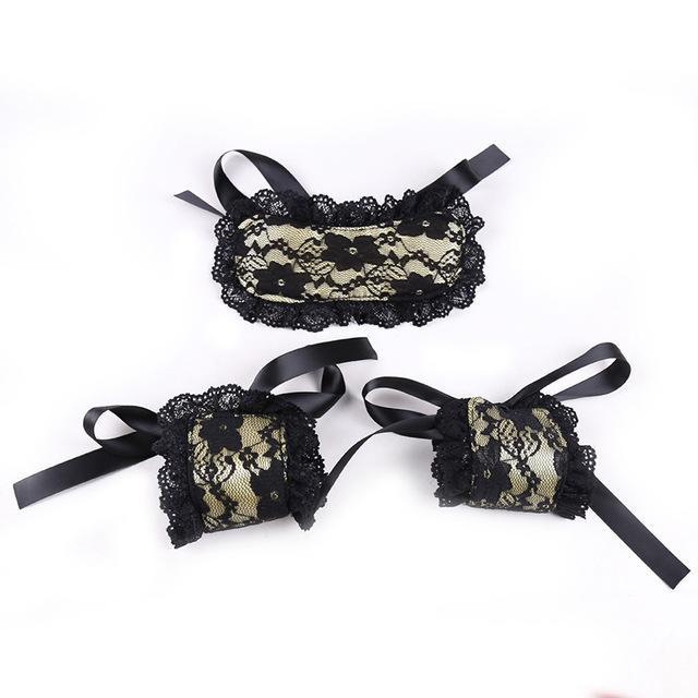 Our gorgeous, lace, Kinky Bondage Bedroom Kit is a fun, fetishistic way to spice up your love life. Available in a variety of colours, this sexy package includes a lace mask and pair of lace handcuffs. The bauble handled, erotic whip is optional!