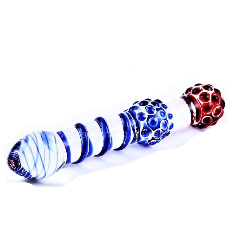 The Spiral Staircase is a full tip glass double ended dildo designed for the ultimate satisfaction. Deliciously naughty, thick and long, his beaded glass dildo will keep you up all night long.