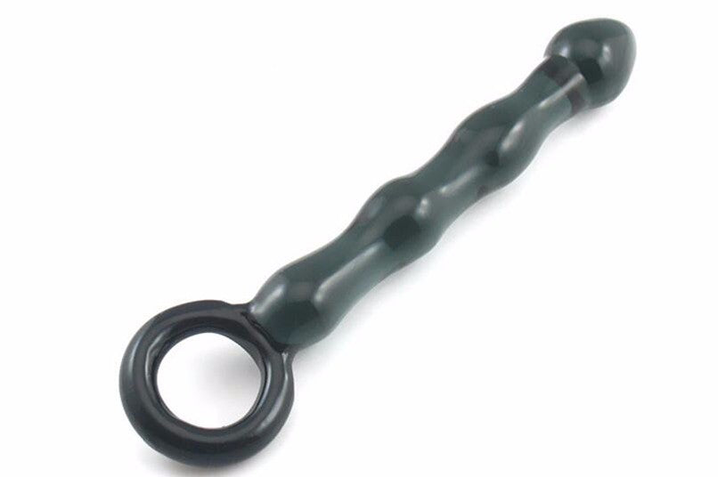 The Bottle Opener is a decadent, black, glass dildo designed for multifunctional  use. Ribbed for your pleasure, this luxury sex toy can be utilised as a glass anal plug too.