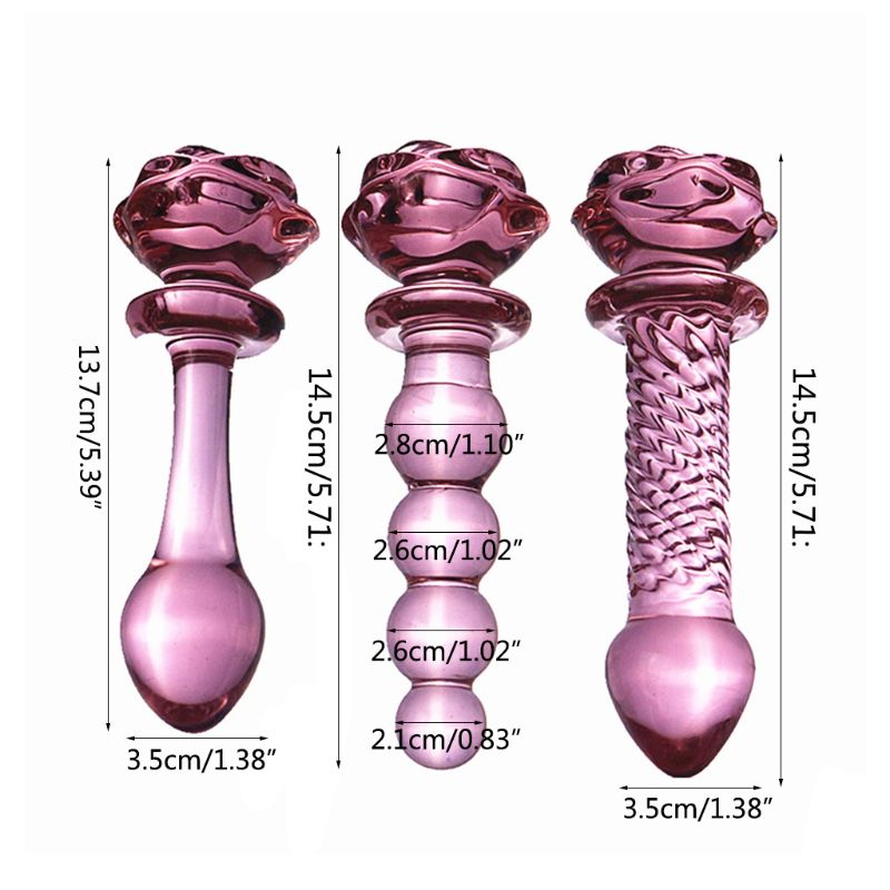 The Red Rose represents our gorgeous trio of textured Glass Anal Plugs. Beautifully designed to stimulate, our glass dildos are perfect for temperature play. Easily heat them up or cool them down in hot or cold water for your desired effect.